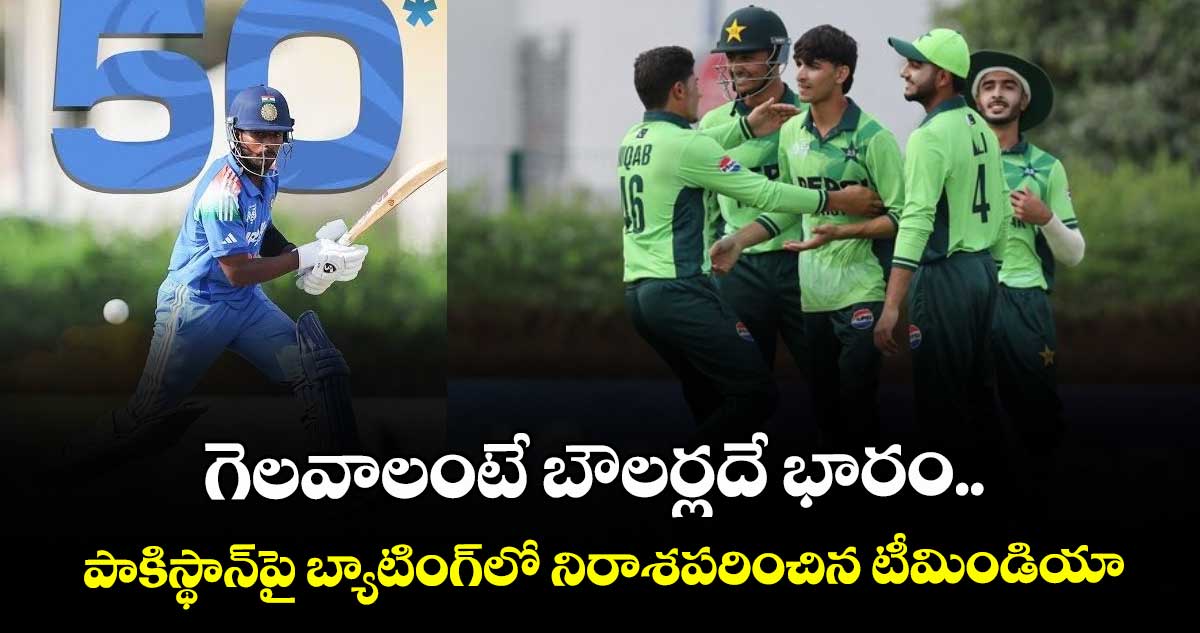 అండర్-19 ఆసియా కప్ లో టీమిండియా ప్రత్యర్థి పాకిస్థాన్ పై బ్యాటింగ్ లో విఫలమైంది. పాకిస్థాన్ బౌలర్లు అద్భుతంగా బౌలింగ్ చేయడంతో ఒక మాదిరి స్కోర్ కే పరిమితమైంది. ఆదివారం (డిసెంబర్ 14) దుబాయ్ వేదికగా ఐసీసీ అకాడమీ గ్రౌండ్ లో జరుగుతున్న ఈ మ్యాచ్ లో భారత జట్టు 46.1 ఓవర్లలోనే 240 పరుగులకు ఆలౌటైంది. ఆరోన్ జార్జ్ 85 పరుగులు చేసి జట్టుకు ఒక మాదిరి స్కోర్ అందించడంలో కీలక పాత్ర పోషించాడు. కనిష్క్ చౌహాన్ (46), ఆయుష్ మాత్రే (38) రాణించారు. పాకిస్థాన్ బౌలర్లలో మొహమ్మద్ సయ్యం, అబ్దుల్ సుభాన్ చెరో మూడు వికెట్లు పడగొట్టారు. నిఖాబ్ షఫీక్ రెండు.. అలీ రజా,అహ్మద్ హుస్సేన్ లకు ఒక్కో వికెట్ దక్కింది.