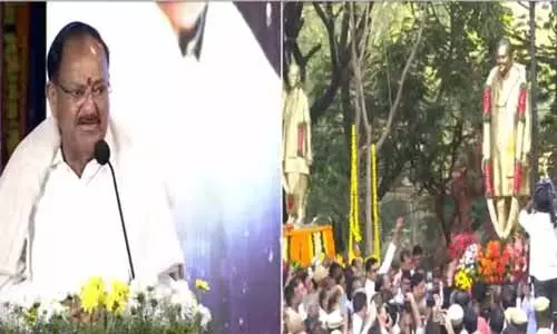 హైదరాబాద్: అప్పుడు నెల్లూరు వాడిని.. ఇప్పుడు తెలంగాణ వాడినని.. ఇక్కడ ఉంటున్నా కాబట్టి తెలంగాణ వాడినని ఉపరాష్ట్రపతి వెంకయ్యనాయుడు తెలిపారు. ప్రతి ఒక్కరి మనసస్సుల్లో బాలసుబ్రహ్మణ్యం చిరస్థాయిగా ఉండిపోతారని, ఎస్పి బాలసుబ్రహ్మణ్యం ఎందరికో ఆదర్శంగా నిలిచారని అన్నారు. రవీంద్రభారతిలో ఎస్పి బాలసుబ్రహ్మణ్యం 7 అడుగుల కాంస్య విగ్రహాన్నివెంకయ్యనాయుడు ఆవిష్కరించారు. ఉపరాష్ట్రపతి వెంకయ్య నాయుడు, మంత్రి శ్రీధర్ బాబు హాజరయ్యారు. ఈ సందర్భంగా వెంకయ్యనాయుడు మీడియాతో మాట్లాడుతూ.. భావితరాల కోసమే రవీంద్ర భారతిలో బాలసుబ్రహ్మణ్యం విగ్రహం ఆవిష్కరించామని, స్వర సార్వభౌమత్వానికి బాలసుబ్రహ్మణ్యం నిలువెత్తు నిదర్శమని కొనియాడారు. బాలు మన మధ్య లేకపోయినా.. పాట రూపంలో మనతోనే ఉన్నారని వెంకయ్యనాయుడు పేర్కొన్నారు.
