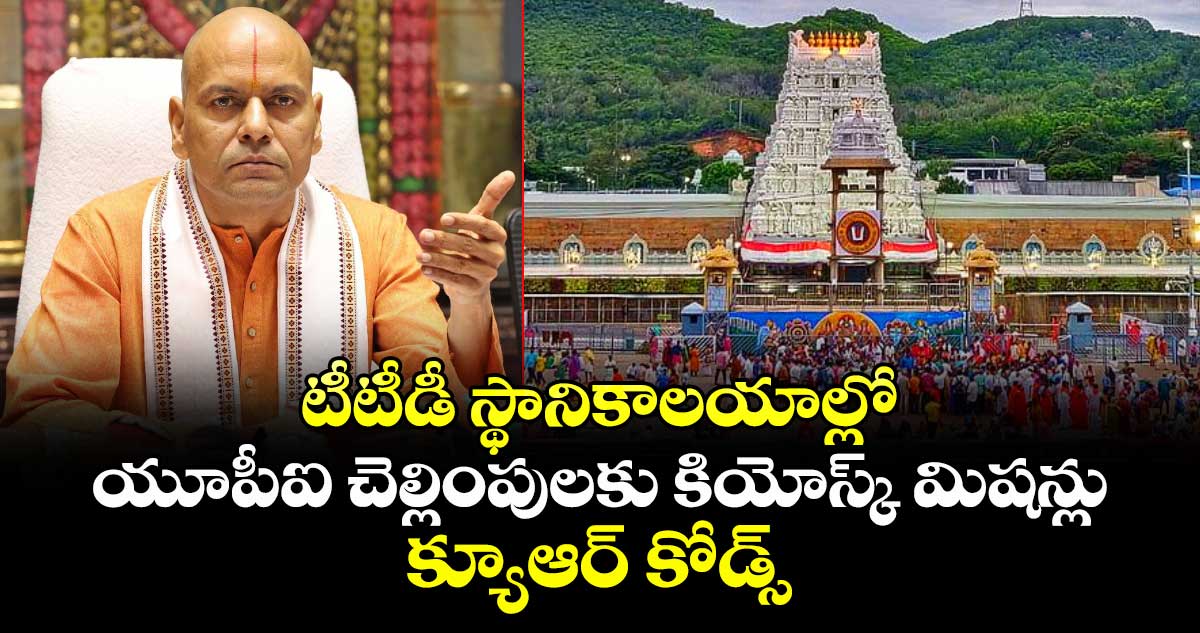 తిరుపతి: దేశవ్యాప్తం ఉన్న 60 టీటీడీ ఆలయాల్లో భక్తులు సులభతరంగా యూపీఐ పేమెంట్లు చేసేందుకు వీలుగా కియోస్క్ మిషన్లు, క్యూఆర్ కోడ్స్ ఏర్పాటు చేయాలని అధికారులను టీటీడీ ఈవో అనిల్ కుమార్ సింఘాల్ ఆదేశించారు. తిరుపతిలోని టీటీడీ పరిపాలనా భవనంలోని ఆయన కార్యాలయంలో సోమవారం (డిసెంబర్ 15) ఉదయం సీనియర్ అధికారులతో ఈవో సమీక్షా సమావేశం నిర్వహించారు.