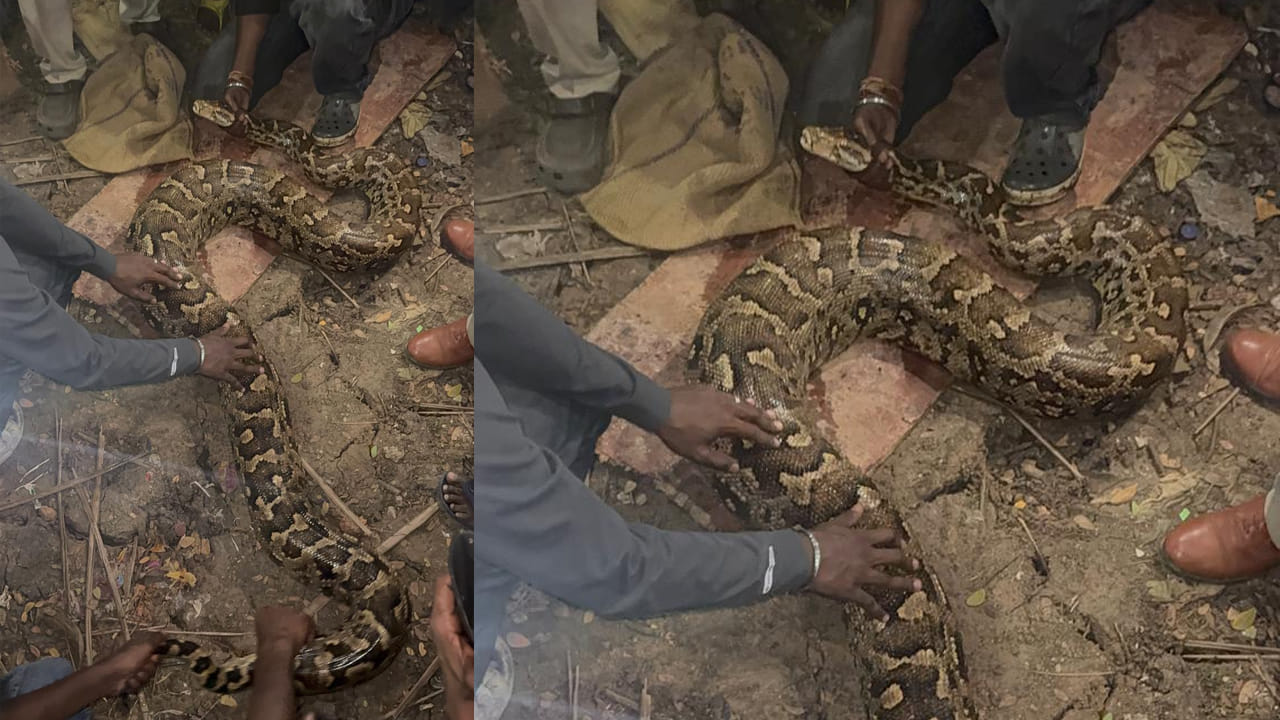 పశ్చిమగోదావరి జిల్లా భీమవరంలో భారీ కొండచిలువ ప్రత్యక్షం అయ్యింది. యనమదుర్రు డ్రైన్ నుంచి పంటచేలకు నీరు తోడుతుండగా బయటకు వచ్చింది ఈ భారీ కొండచిలువ. పన్నెండు అడుగులపైనే ఉన్న కొండచిలువను చూసి స్థానికులు భయాందోళనలకు గురయ్యారు. అక్కడి నుంచి పరుగులు తీసారు. యనమదుర్రు కాలువ నీటిని తోడేందుకు ఏర్పాటు చేసిన ట్యాంక్ లోపలికి వెళ్లిపోయింది కొండచిలువ. బయటకు వేస్తే ఏం చేస్తుందో అని అక్కడున్నవారంతా హైరానా పడ్డారు. ఈ క్రమంలో మాజీ ఎమ్మెల్యే గ్రంధి శ్రీనివాస్ ఇంటి వద్ద పనిచేస్తున్న కొందరు అక్కడికి చేరుకున్నారు. స్థానికులకు దైర్యం చెప్పి ఫారెస్ట్ అధికారులకు సమాచారం అందించారు.