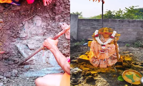 మంచిర్యాల జిల్లా, ముల్కల్ల గోదావరి నది కి వెళ్లె రహాదారి ప్రక్కన వ్యవసాయ భూమిలో అమ్మవారి విగ్రహ ప్రతిమ బయటపడింది. ఇటీవల ముల్కల్ల గోదావరి తీరానికి అఘోరాలు, సాధువులు వచ్చిన క్రమంలో ఈ ప్రాంతంలో అమ్మవారి శక్తి ఉందని స్థానికులకు తెలపడంతో పాటు అమ్మవారి ఉన్న ప్రదేశాన్ని గుర్తించి వెళ్లారు. దీంతో గ్రామస్థులు, పూజారులు గత రెండు రోజులుగా తవ్వకాలు చేపట్టారు. పాత మంచిర్యాలకు చెందిన ఒక రైతుకు చెందిన భూమిలో తవ్వకాలు చేపట్టగా సోమవారం అమ్మవారి విగ్రహ పతిమ లభించింది. వెంటనే అమ్మవారి విగ్రహానికి పూజలు చేసి నిలబెట్టారు. వివరాల్లోకి వెళ్తే.. నాసిక్ నుండి వచ్చిన సాధువులు ముల్కల్ల గోదావరి తీరప్రాంతంలో పుణ్యస్నానాలు చేసేందుకు వెళ్తున్న క్రమంలో వారి రాకతో
