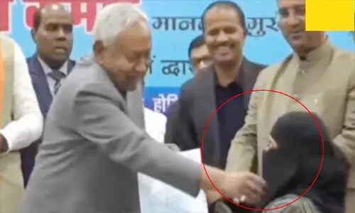 పాట్నా ః బీహార్ ముఖ్యమంత్రి నితీశ్ కుమార్ సోమవారం వివాదాస్పద రీతిలో వ్యవహరించారు. అధికారిక కార్యక్రమంలో ఓ మహిళా ఆయుష్ డాక్టర్ మేలిముసుగు (హిజాబ్) తొలిగించి చూశారు. సంబంధిత డాక్టర్లకు నియామక పత్రాలను అందించేందుకు ఏర్పాటు అయిన సభలో చోటు చేసుకున్న ఈ ఘటన సంబంధిత వీడియో సామాజిక మాధ్యమాలలో వెల్లువెత్తింది. దీనితో సిఎం తీరుపై విమర్శలు జోరందుకున్నాయి. ప్రతిపక్ష రాష్ట్రీయ జనతాదళ్ ముఖ్యమంత్రి వైఖరి జుగుప్సాకరంగా ఉందని విమర్శించారు. ఆయన ఫక్కా సంఘీగా మారారని, ఇప్పుడు జరిగిన ఘటనే ఇందుకు నిదర్శనమని కాంగ్రెస్ పార్టీ విమర్శించింది. ముఖ్యమంత్రి రాజీనామాకు డిమాండ్ చేసింది. ఇటీవలి కాలంలో ఆయుషు డాక్టర్లుగా కొందరిని ఎంపిక చేశారు. మహిళా డాక్టర్లకు నియామక పత్రాలు అందించే కార్యక్రమానికి ముఖ్యమంత్రి హాజరయ్యారు. పత్రాలు అందిస్తున్న దశలో తన ఎదుటికి హిజాబ్తో వచ్చిన నుస్రత్ పర్వీన్ ముసుగును సిఎం తొలిగించారు. ముందు ముఖం ముసుగు తీయమ్మా అంటూనే తానే ఈ పనిచేశారు. వెంటనే ఇది కెమెరాల క్లిక్లతో వీడియోగా మారింది. సిఎం చేసిన పనికి నుస్రత్ కంగుతింది. అక్కడున్న వారు నవ్వుతూ ఉండటం కన్పించింది.