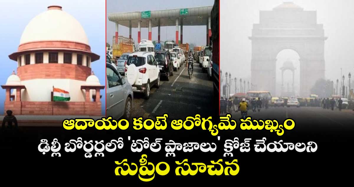 ఢిల్లీలో వాయు కాలుష్యం రోజురోజుకూ దిగజారుతున్న వేళ.. సుప్రీంకోర్టు బుధవారం అత్యంత కీలకమైన వ్యాఖ్యలు చేసింది. కాలుష్య నియంత్రణే లక్ష్యంగా ఢిల్లీ సరిహద్దుల్లో టోల్ వసూళ్లను నిలిపివేయాలని అత్యున్నత న్యాయస్థానం సూచించింది. చీఫ్ జస్టిస్ సూర్య కాంత్ నేతృత్వంలోని ధర్మాసనం ప్రజల ఆరోగ్యం కంటే ఆదాయం ముఖ్యం కాదని ఈ సందర్భంగా స్పష్టం చేసింది. ఢిల్లీ చుట్టూ ఉన్న 9 టోల్ ప్లాజాల్లో కార్యకలాపాలను తాత్కాలికంగా నిలిపివేయడానికి అవకాశాలను పరిశీలించాలని అధికారులను సుప్రీంకోర్టు ఆదేశించింది. వారంలోపు నిర్ణయం తీసుకుని రికార్డులో ఉంచాలని కోర్టు కోరింది.