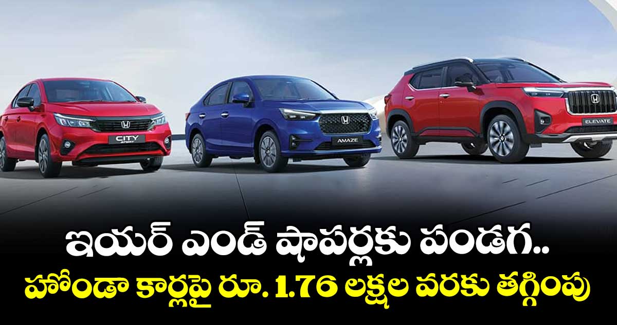 మీరు కొత్త కారు కొనాలని ప్లాన్ చేస్తున్నారా? అయితే హోండా అదిరిపోయే ఆఫర్లతో ముందుకొచ్చేసింది. ఈ ఏడాది చివరి నాటికి తన పాపులర్ మోడళ్లపై భారీ స్థాయిలో ప్రయోజనాలను ప్రకటించింది. హోండా విక్రయిస్తున్న అమేజ్, సిటీ, ఎలివేట్ మోడళ్లపై ఏకంగా రూ. 1.76 లక్షల వరకు తగ్గింపును అందిస్తోంది.