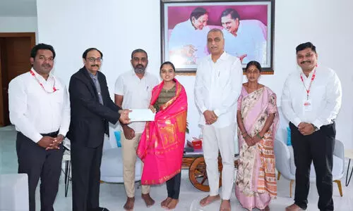 మన తెలంగాణ/సిద్దిపేట అర్బన్: ప్రజలకు ఆప ద వస్తే అండగా తానున్నానని, ఆపదకు మరోపేరుగా నిలిచిన హరీశ్రావు మరోమారు తన ఔదార్యాన్ని చాటుకున్నారు. సిద్దిపేట జిల్లా కేంద్రంలో తన క్యాంపు కార్యాలయంలో మమత అనే పిజి వై ద్య విద్యార్థినికి విద్యా రుణం కోసం బ్యాంక్లో తన స్వగృహాన్ని మార్ట్గేజ్ చేసి రూ.20లక్షలు మంజూరు చేయించారు. వివరాల్లోకి వెళ్తే.. సిద్దిపేటకు చెందిన కొంక రామచంద్రం టైలరింగ్ వృత్తి చేస్తూ తన కుటుంబాన్ని పోషించుకుంటున్నాడు. ఆయన పెద్ద కుమార్తె మమత ఆంధ్రప్రదేశ్లోని విజయవాడ సిద్ధార్థ మెడికల్ కళాశాలలో ఉచితం గా ఎంబిబిఎస్ సీటు సాధించి చదువు పూర్తి చేసిం ది. పిజి ఎంట్రన్స్ పరీక్ష రాయగా మహబూబ్నగ ర్ ఎస్విఎస్ మెడికల్ కళాశాలలో ఆప్తమాలజీ వి భాగంలో ఆమెకు సీటు వచ్చింది. ప్రభుత్వ కన్వీన ర్ కోటాలోనే సీటు వచ్చినప్పటికీ మూడేళ్ల పాటు ప్రతి సంవత్సరం రూ.7.50 లక్షల చొప్పున ట్యూ షన్ ఫీజు చెల్లించాలి. ఈనెల 18వ తేదీ చివరి గడువు. దీంతో ఆర్థిక స్తోమత లేని ఆమె తండ్రి రామచంద్రం గతంలో