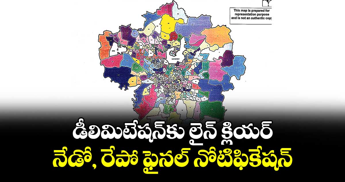 హైదరాబాద్ సిటీ, వెలుగు: జీహెచ్ఎంసీ వార్డుల డీలిమిటేషన్కు లైన్ క్లియర్ అయింది. నేడో, రేపో ఫైనల్ నోటిఫికేషన్ విడుదలయ్యే అవకాశముంది. ఈ నెల 9న డీలిమిటేషన్ పై ప్రిలిమినరీ నోటిఫికేషన్ జారీ చేసి10వ తేదీ నుంచి అభ్యంతరాలను, సలహాలను స్వీకరించారు. ఈ గడువు కూడా గురువారంతో పూర్తయ్యింది. వాస్తవానికి మంగళవారంతోనే గడువు ముగిసినా నలుగురు వివిధ అంశాలపై అభ్యంతరాలు వ్యక్తం చేస్తూ కోర్టును ఆశ్రయించటంతో మరో రెండు రోజులు గడువు పెంచింది. దీంతో గురువారం సాయంత్రం వరకు అన్ని చోట్లా కలిపి 5,905 అభ్యంతరాలు, సలహాలు వచ్చాయి. జీహెచ్ఎంసీ కూడా హైకోర్టులో సవాలు చేయగా ప్రక్రియను ఆపాల్సిన అవసరం లేదని, పిటిషన్లు దాఖలు చేసిన నలుగురికి డీలిమిటేషన్ మ్యాప్ లు, వార్డుల జనాభా లెక్కలను ఇస్తే సరిపోతుందని ఆదేశించింది. దీంతో ఫైనల్ నోటిఫికేషన్ రిలీజ్కు గ్రీన్ సిగ్నల్ వచ్చింది. ఇప్పటికే అన్ని వివరాలు రెడీగా ఉండడంతో ఆమోదం కోసం సర్కారుకు పంపనున్నట్టు తెలిసింది.