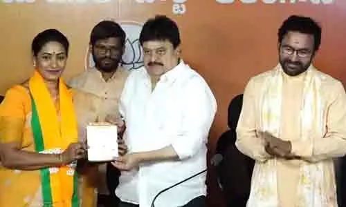 మన తెలంగాణ/హైదరాబాద్ః ప్రముఖ సినీ నటి ఆమని బిజెపిలో చేరారు. శనివారం ఆమె తన సహచరురాలు, ప్రముఖ మేకప్ ఆర్టిస్ట్, నంది అవార్డు గ్రహిత శోభలతతో కలిసి నాంపల్లిలోని బిజెపి రాష్ట్ర కార్యాలయానికి చేరుకున్నారు. ఈ సందర్భంగా కేంద్ర బొగ్గు గనుల శాఖ మంత్రి జి. కిషన్ రెడ్డి, పార్టీ రాష్ట్ర అధ్యక్షుడు ఎన్. రాంచందర్ రావు వారికి స్వాగతం పలికారు. ఆ తర్వాత రాంచందర్ రావు వారిపై పార్టీ కండువా కప్పి, పార్టీ సభ్యత్వం ఇచ్చారు.