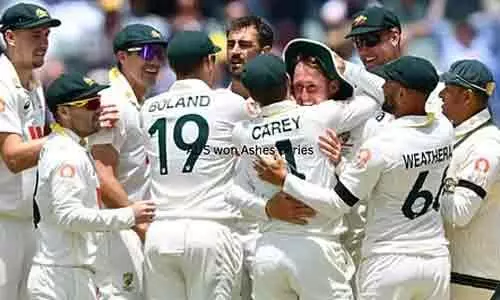 అడిలైడ్: ఇంగ్లండ్తో జరిగిన మూడో టెస్టులో ఆతిథ్య ఆస్ట్రేలియా 82 పరుగుల తేడాతో ఘన విజయం సాధించింది. ఈ గెలుపుతో ఆస్ట్రేలియా మరో రెండు టెస్టులు మిగిలివుండగానే 30 తేడాతో యాషెస్ సిరీస్ను సొంతం చేసుకుంది. 435 పరుగుల క్లిష్టమైన లక్షంతో బ్యాటింగ్కు దిగిన ఇంగ్లండ్ 352 పరుగులకే కుప్పకూలింది. ఆస్ట్రేలియా బౌలర్లు అసాధారణ బౌలింగ్తో ఇంగ్లండ్ను తక్కువ స్కోరుకే పరిమితం చేయడంలో సఫలమయ్యారు. ఓపెనర్ జాక్ క్రాలీ (85) పరుగులతో టాప్ స్కోరర్గా నిలిచాడు.