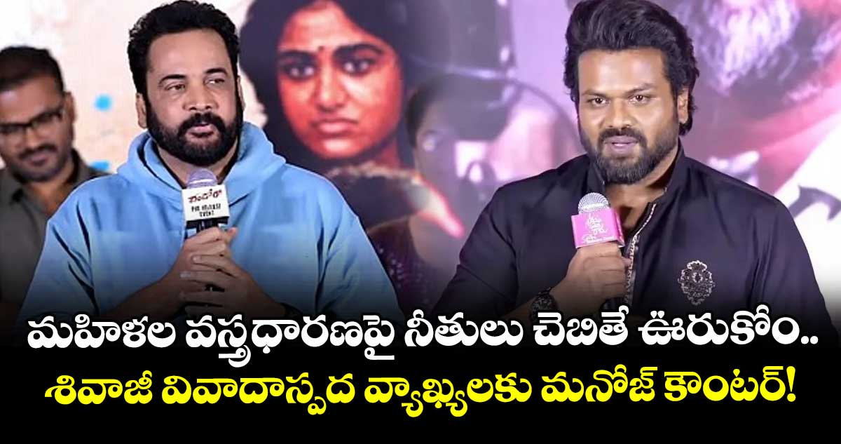 టాలీవుడ్ లో ప్రస్తుతం ‘వస్త్రధారణ’ చుట్టూ మొదలైన వివాదం ముదురుతోంది. ‘దండోరా’ చిత్ర ఈవెంట్లో నటుడు శివాజీ హీరోయిన్స్ దుస్తులపై చేసిన వ్యాఖ్యలు పెను దుమారాన్నే రేపాయి. ఈ వ్యాఖ్యలపై ఇప్పటికే సింగర్ చిన్మయి, యాంకర్ అనసూయ వంటి వారు తమ నిరసన వ్యక్తం చేశారు. లేటెస్ట్ గా మంచు మనోజ్ ఈ అంశంపై స్పందించిన తీరు సోషల్ మీడియాలో వైరల్ అవుతోంది. శివాజీ పేరు ఎత్తకుండానే, ఆయన వ్యాఖ్యలలోని లోపాలను ఎండగడుతూ మనోజ్ రాసిన బహిరంగ లేఖ ఇప్పుడు చర్చనీయాంశమైంది.