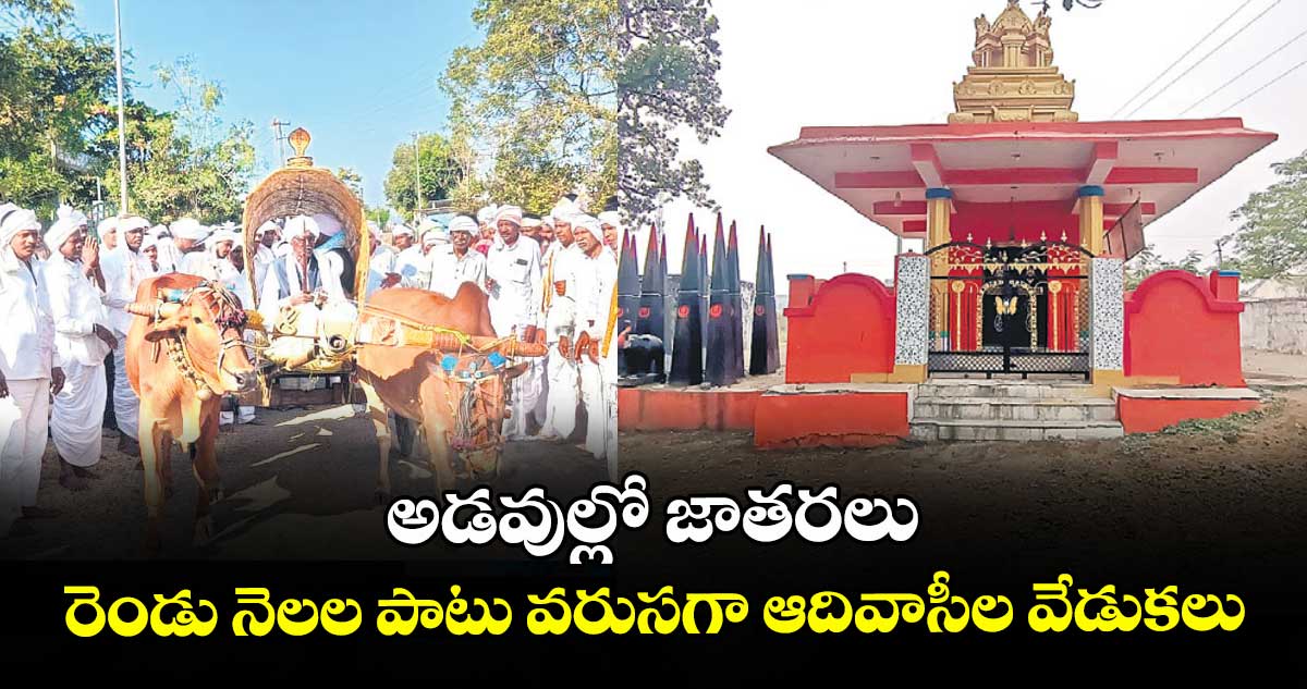 రెండు నెలల పాటు అడవుల్లో ఆదివాసీల జాతరలతో ఆధ్యాత్మిక శోభ సంతరించుకోనుంది. కుమ్రం భీం ఆసిఫాబాద్ జిల్లాలోని కెరమెరి మండలం బీమల్పేన్, సిర్పూర్(యు) మండలంలో మహాదేవ్, నార్నూర్ మండలంలో ఖాందేవ్ జాతర, జంగుబాయి గుహల్లోని దేవుళ్లు, ఉట్నూర్ మండలం శ్యాంపూర్లో బుడుందేవ్ దేవతలకు ప్రత్యేక పూజలు చేయనున్నారు. పుష్యమాసం ప్రారంభం కావడంతో గిరిజనులు పొలిమేర పండుగలతో పాటు గ్రామ దేవతలైన పెర్సపేన్, భీమ్ దేవరలకు కొలిచి జంగుబాయికి పూజలు చేస్తారు.