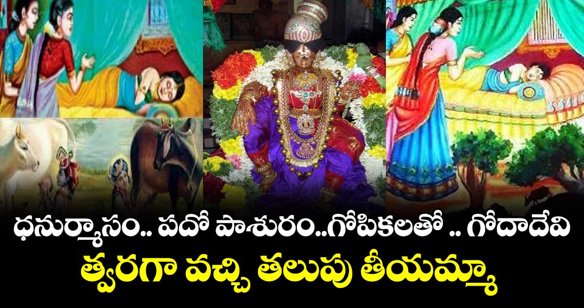 భావం: నోము నోచి శ్రీకృష్ణ సంశ్లేష సుఖానుభవమును పొందుచున్న ఓయమ్మా! తలుపును తెరువుము, తలుపును తెరువకపోయినను మానెగాని, నోటినైనను తెఱచి పలుకవచ్చునుకదా తల్లీ! (జ్ఞానుల దర్శనము కంటె వారి శ్రీ సూక్తులను వినటమే చాల ముఖ్యమని చెప్పుచున్నది ఆండాళ్ తల్లి). పరిమళాలను వెదజల్లే తులసి మాలలను కిరీటముగా ధరించిన శ్రీ నారాయణుడు మనచే స్తోత్రము చేయబడినవాడై సంతసించి మనకు వ్రతోపక రణాలను (పఱై) ఇచ్చునుకద!