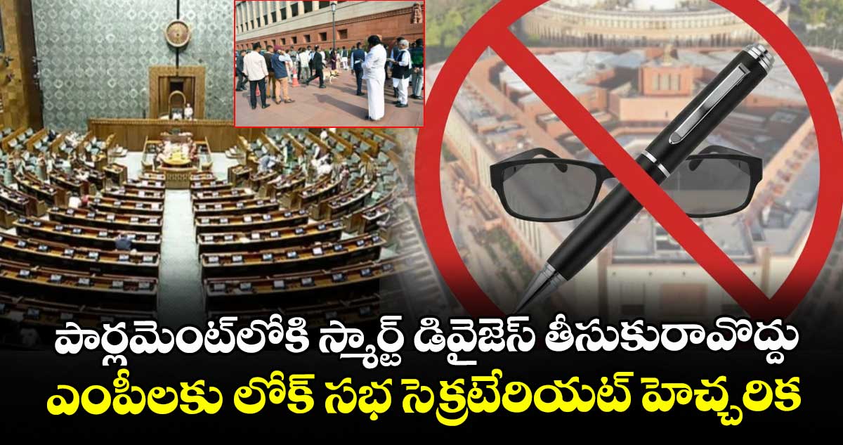పార్లమెంట్ ఆవరణలో ఎంపీలకు నిబంధనలు గట్టిగా అమలు చేస్తోంది లోక్ సభ సెక్రటేరియట్. ఇకపై ఎంపీలు స్మార్ట్ స్మార్ట్ కళ్లద్దాలు, పెన్ కెమెరాలు, వాచెస్ వంటి డివైజులు పార్లమెంటులోగానీ, పార్లమెంటు ప్రాంగణంలోగానీ ఎటువంటి స్మార్ట్ డివైజస్ ఉపయోగించకూడదని లోక్ సభ సెక్రటేరియల్ స్పష్టం చేసింది. ఇది వారి గోప్యతకు, భద్రతకు భంగం కలిగిస్తుందని ఇది పార్లమెంట్ అధికారాలను ఉల్లంఘించే అవకాశం ఉందని తెలిపింది.