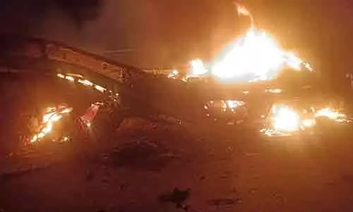 లారీ ఢీకొట్టడంతో బస్సులో మంటలు చెలరేగి తొమ్మిది మంది ప్రయాణికులు సజీవదహనమయ్యారు. ఈ ఘోర రోడ్డు ప్రమాదం కర్ణాటకలో జరిగింది. గురువారం బెంగళూరు నుంచి గోకర్ణ వెళ్తున్న ఓ ప్రైవేటు ట్రావెల్స్ బస్సును కంటెయినర్ లారీ ఢీకొట్టింది. హిరియూర్ సమీపంలో వేగంగా వస్తున్న కంటైనర్ ట్రక్కు ప్రైవేట్ లగ్జరీ స్లీపర్ బస్సును ఢీకొనడంతో బస్సులో మంటలు చెలరేగాయి. ఈ ప్రమాదంలో 9 మంది ప్రయాణికులు సజీవ దహనమయ్యారు. ఈ ఘటనపై పోలీసులు కేసు నమోదు చేసి దర్యాప్తు చేస్తున్నారు.
