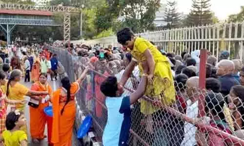 తిరుమల తిరుపతి దేవస్థానానికి భక్తులు పోటెత్తారు. వరుస సెలవులు రావడంతో తిరుమలకు భారీగా భక్తులు తరలివస్తున్నారు. భక్తుల రద్దీతో ఆలయ క్యూలైన్లు కిక్కిరిసిపోయాయి. స్వామివారి సర్వదర్శనం కోసం వైకుంఠం క్యూకాంప్లెక్సులు, నారాయణగిరి షెడ్లు భక్తులతో నిండిపోయాయి. దీంతో శిలాతోరణం క్యూలైన్ వరకు వేచి ఉన్న భక్తులు వేచి ఉన్నారు. ఈ క్రమంలో క్యూలైన్ లోకి భక్తుల అనుమతిని టిటిడి అధికారులు నిలిపేశారు. రేపు(శుక్రవారం, డిసెంబర్ 26) ఉదయం 6 గంటలకు భక్తులను క్యూ లైన్ లోకి అనుమతించనున్నారు. ప్రస్తుతం క్యూలైన్ లో వేచి ఉన్న భక్తులకు.. శ్రీవారి దర్శనానికి 30 గంటల సమయం పట్టే అవకాశం ఉంది.