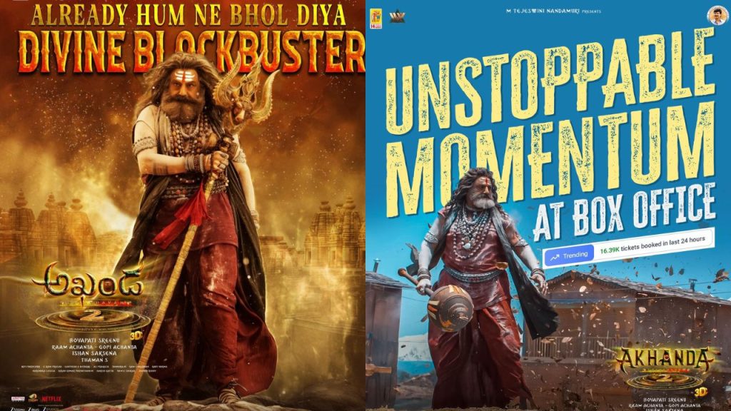బాలయ్య – బోయపాటి కాంబోలో వచ్చిన చిత్రం అఖండ 2. భారీ అంచనాల మధ్య ఈ నెల 12 న విడుదలైన “ఆఖండ 2” సినిమా ఆడీయన్స్ నుండి మంచి స్పందన రాబట్టగా రివ్యూయర్స్ నుండి మిశ్రమ స్పందన రాబట్టింది. అయినప్పటికీ బాలకృష్ణ అద్భుతమైన అఘోర పాత్ర మరియు బోయపాటి శ్రీను యొక్క మాస్-పాపులర్ బ్లాక్స్ సినిమాను భారీ వసూళ్లు తెచ్చిపెడుతుంది. మేకర్స్ ఈ సినిమాకు ప్రమోషన్లుమాత్రేమే చేసినా కలెక్షన్స్ స్టడీగా రాబడుతూ ట్రేడ్ అని ఆశ్చర్యపరిచింది.
