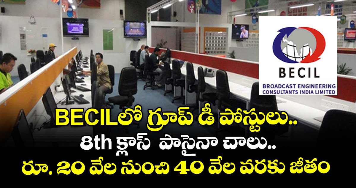బ్రాడ్కాస్ట్ ఇంజినీరింగ్ కన్సల్టెంట్స్ ఇండియా లిమిటెడ్ (బీఈసీఐఎల్) డేటా ఎంట్రీ ఆపరేటర్, మల్టీ టాస్కింగ్ స్టాఫ్, ఫుడ్ బేరర్ పోస్టుల భర్తీకి నోటిఫికేషన్ విడుదల చేసింది. ఆసక్తి, అర్హత గల అభ్యర్థులు ఆఫ్లైన్లో దరఖాస్తు చేసుకోవచ్చు. దరఖాస్తు ఫారమ్ను సమర్పించడానికి చివరి తేదీ 2026, జనవరి 02.