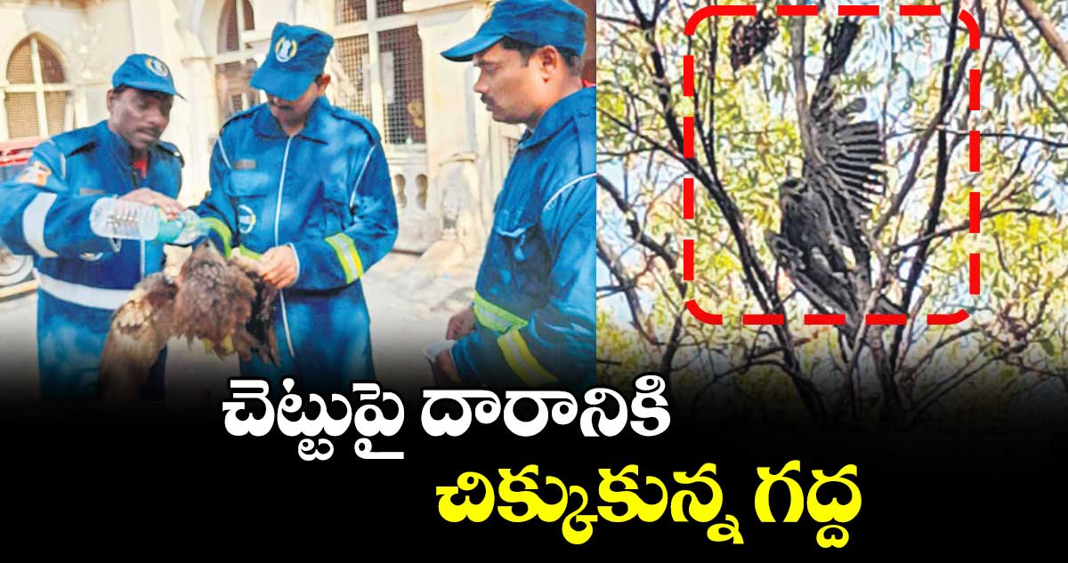ఓల్డ్సిటీ, వెలుగు: చెట్టుపై దారానికి చిక్కుకున్న గద్దను ఫైర్ అధికారులు చాకచక్యంగా కాపాడారు. గురువారం మధ్యాహ్నం హైకోర్టు గేట్ నంబర్ 3 వద్ద ఉన్న వేపచెట్టుపై గద్ద వాలింది. అక్కడే ఉన్న పతంగులు ఎగురవేసేందుకు ఉపయోగించే దారంలో ఆ పక్షి చిక్కుకుంది. ఇది గమనించిన అగ్నిమాపక ఉద్యోగులు నర్సింగ్ యాదవ్, ఆర్.మహేశ్ రాథోడ్, కె.కొమ్రెల్లి చాకచక్యంగా చెట్టుపైకి ఎక్కి ఆ దారాన్ని తెంపేసి దానిని రక్షించారు. గద్దకు నీళ్లు తాగించి గాలిలో వదిలేశారు.