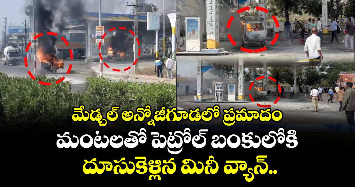 ఇంతలో మంటలతో ఉన్న వ్యాన్ ఒక్కసారిగా కంట్రోల్ తప్పి సమీపంలోని భారత్ పెట్రోల్ బంకులోకి దూసుకెళ్లింది. దీంతో బంకు సిబ్బంది వాహనదారులు ఒక్కసారిగా భయభ్రాంతులకు లోనై పరుగులు తీశారు.