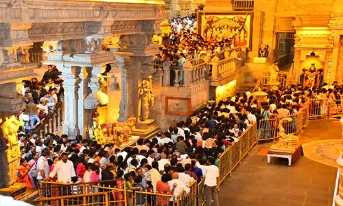 యాదాద్రి భువనగిరి జిల్లా, యాదగిరిగుట్ట శ్రీలక్ష్మీనరసింహస్వామి వారి ఆలయంలో భక్తుల రద్దీ కొనసాగుతోంది. వరుస సెలవులు రావడంతో స్వామి వారి దర్శనానికి వస్తున్న భక్తులతో యాదగిరిగుట్ట సందడిగా మారింది. స్వామివారి శీఘ్ర దర్శనానికి 3 గంటలు, అతిశీఘ్ర దర్శనానికి గంటలకుపైగా సమయం పట్టినట్లు ఆలయ అధికారులు తెలిపారు. గత రెండు రోజులుగా శ్రీలక్ష్మీనరసింహస్వామి వారి కొండపైన, కొండ కింద పలు ప్రాంతాల్లో ఎటు చూసినా భక్తుల రద్దీ కనిపించింది. భారీగా తరలివచ్చిన భక్తులు స్వామి, అమ్మవార్లను దర్శించుకొని మొక్కులు చెల్లించుకున్నారు. కొండపైకి వెళ్లే ఘాట్రోడ్డు ప్రాంతంలో భారీగా వాహనాలు నిలిచిపోయాయి. శని, ఆదివారాల్లో స్వామి వారి దర్శనానికి వచ్చే భక్తుల సంఖ్య మరింత పెరిగే అవకాశం ఉంది.