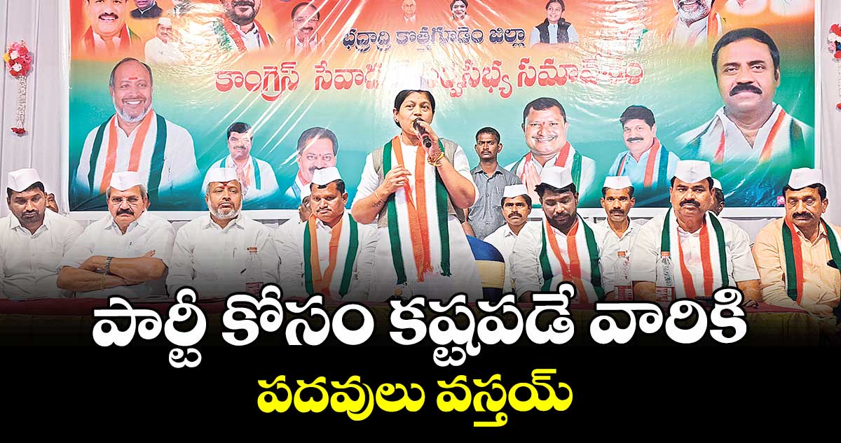 చండ్రుగొండ, వెలుగు : గ్రామాల్లో కాంగ్రెస్ పార్టీ బలోపేతానికి కష్టపడి పనిచేసే కార్యకర్తలకు సముచితస్థానంతో పాటు పదవులు వరిస్తాయని భద్రాద్రికొత్తగూడెం జిల్లా డీసీసీ అధ్యక్షురాలు తోట దేవి ప్రసన్న అన్నారు. శుక్రవారం దామరచర్ల గ్రామంలోని ఎస్ఆర్ ఫంక్షన్ హాల్ లో జరిగిన జిల్లా కాంగ్రెస్ సేవాదళ్ సర్వసభ్య సమావేశంలో మాట్లాడారు. 2026లో ప్రతి ఆదివారం రోజున జిల్లా లోని ప్రతి పంచాయితీ ఆఫీసు ఆవరణ లో సాయంత్రం పార్టీ జెండా ఆవిష్కరించాలని సేవాదళ్ కార్యకర్తలకు సూచించారు.