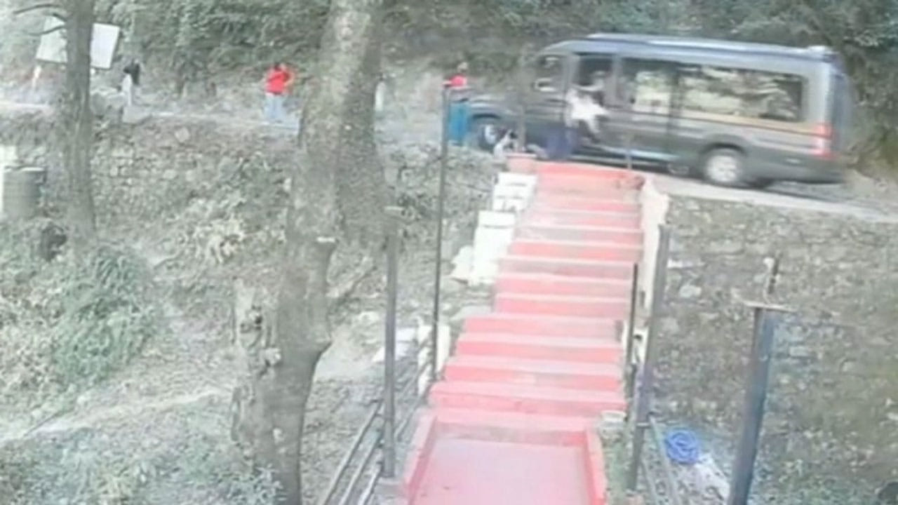 VIDEO | Himachal Pradesh: A major accident was narrowly averted in Dalhousie when a tourist vehicle rolled backward at the popular Panchpula spot. Several tourists were injured after losing balance, but the vehicle was saved from plunging into the gorge, and the incident was… pic.twitter.com/XPH6eKfF9J