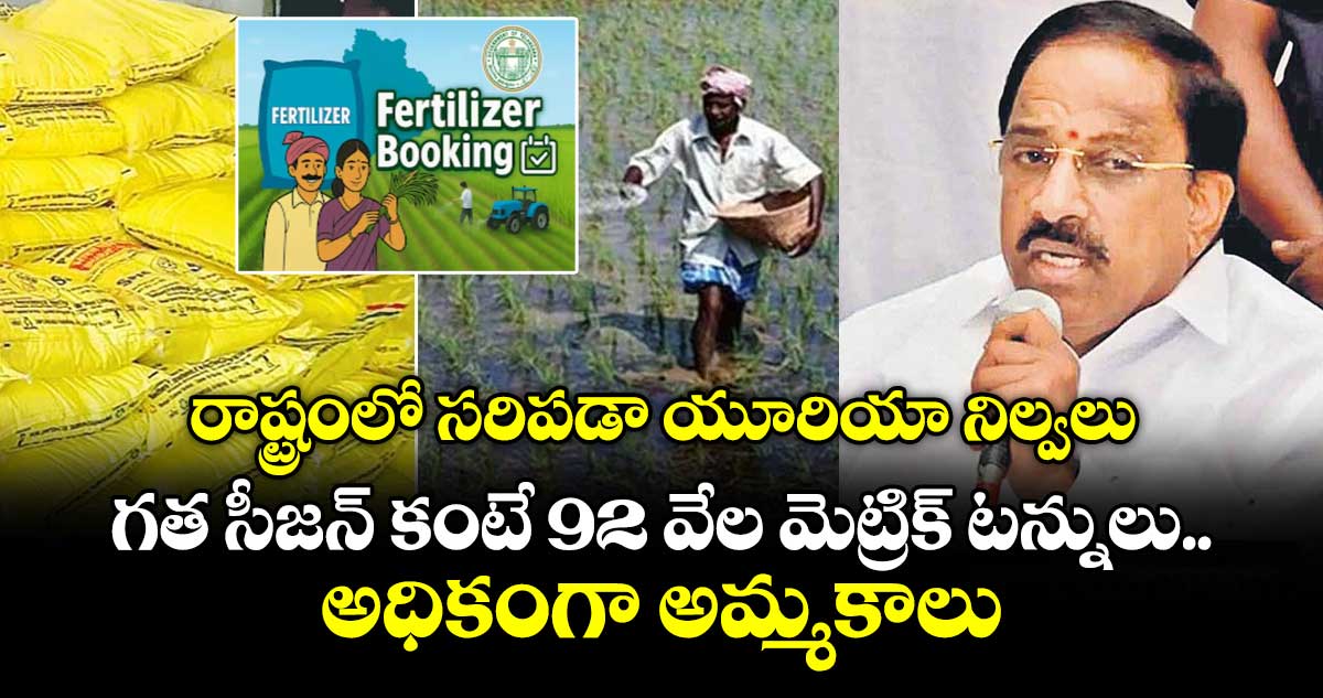 రాష్ట్రంలో రబీ సీజన్ కు సరిపడా యూరియా నిల్వలు రాష్ట్ర ప్రభుత్వం వద్ద అందుబాటులో ఉన్నాయని వ్యవసాయశాఖ మంత్రి తుమ్మల నాగేశ్వరరావు తెలిపారు. సోమవారం (డిసెంబర్ 29) ఫెర్టిలైజర్ (యూరియా) యాప్, యూరియా పంపణీలపై జిల్లా కలెక్టర్లతో వీడియో కాన్ఫరెన్స్ నిర్వహించిన మంత్రి.. యూరియా సరఫరాలో ఇబ్బందులు రానీయవద్దంటూ ఆదేశించారు.