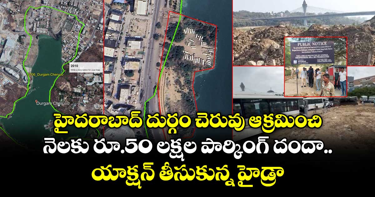 దుర్గం చెరువు ఆక్రమణలపై క్షేత్రస్థాయిలో విచారణ చేసి తొలగింపు చర్యలు చేపట్టిన హైడ్రా.. ఇనార్బిట్ మాల్ వైపు 5 ఎకరాల మేర ఆక్రమణల తొలగించింది హైడ్ర్ఆ. చెరువును మట్టితో నింపి వాహనాల పార్కింగ్ స్థలం ఏర్పాటు చేసినట్లు గుర్తించారు. దీంతో నెలకు సుమారు రూ.50 లక్షల వరకు అద్దెలు వసూలు చేస్తున్నట్లు తేలింది. వాహనాలను ఖాళీ చేయించి ఆక్రమిత ప్రాంతంలో ఫెన్సింగ్ ఏర్పాటు చేశారు హైడ్రా అధికారులు.
