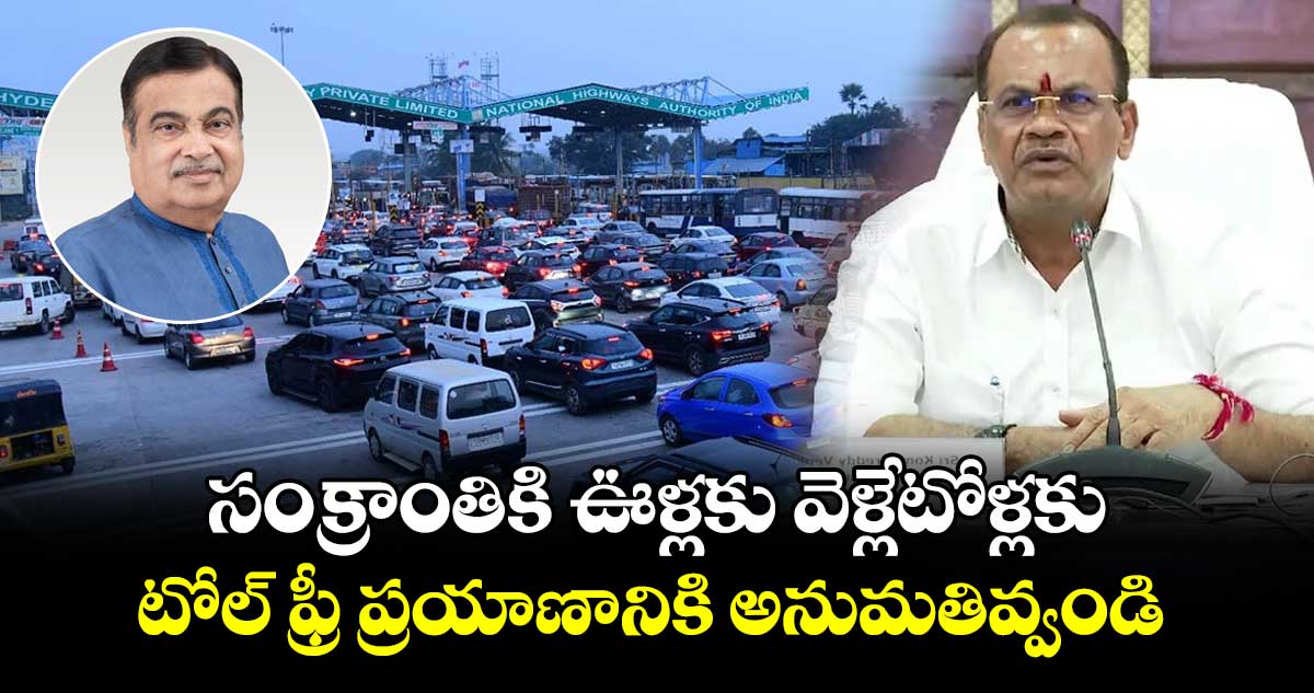 సంక్రాతి సందర్భంగా హైదరాబాద్ నుంచి ఊళ్లకు వెళ్లి వచ్చే వాహనాలకు టోల్ వసూలు చేయొద్దని కోరుతూ కేంద్ర మంత్రి నితిన్ గడ్కరీకి లేఖ రాశారు మంత్రి కోమటిరెడ్డి వెంకట్ రెడ్డి.సంక్రాంతికి వెళ్లి, వచ్చే వాహనాలకు టోల్ వసూలు చేయొద్దని లేఖలో విజ్ఞప్తి చేశారు మంత్రి కోమటిరెడ్డి. జనవరి 9 నుంచి 14వ తేదీ వరకు టోల్ ఫ్రీ ప్రయాణానికి అనుమతివ్వాలని.. ఆ రోజుల్లో టోల్ ప్లాజాల దగ్గర ఫ్రీ వే ఏర్పాటు చేసేలా చర్యలు తీసుకోవాలని లేఖలో రిక్వెస్ట్ చేశారు మంత్రి కోమటిరెడ్డి.