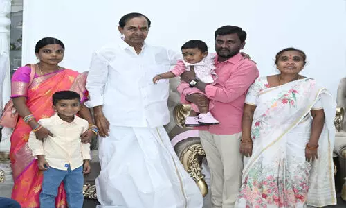 బిఆర్ఎస్ అధినేత, మాజీ ముఖ్యమంత్రి కెసిఆర్ తన అభిమాని కుమారునికి నామకరణం చేశారు. కెసిఆర్ చేతుల మీదుగా తమ కుమారుని పేరు పెట్టుకోవాలని ఎదురుచూసిన తెలంగాణ ఉద్యమకారుల దంపతుల ప్రయత్నం, వైకుంఠ ఏకాదశి పవిత్ర దినం నాడు ఫలించింది. పరిగి నియోజకవర్గానికి చెందిన మల్లేపల్లి గ్రామ నివాసి దొడ్ల నర్సింహులు దంపతులు తమ ప్రియతమ నేత కెసిఆర్తో తన కనిష్ట కుమారునికి నామకరణం చేయించుకోవాలని నిర్ణయించుకున్నారు. కాగా…బాబు పుట్టిన తొమ్మిది నెలల నుండి ఎదురుచూస్తున్న వారి ప్రయత్నం, వైకుంఠ ఏకాదశినాడు ఫలించింది. మంగళవారం నాడు నందినగర్ నివాసానికి వెళ్లగా, కుటుంబంతో వచ్చిన దొడ్ల నర్సింహులు అనిత దంపతులను అధినేత కెసిఆర్ ఆప్యాయంగా ఆహ్వానించారు. ఆ ఉద్యమ దంపతుల కోరికను మన్నించి, వేద పండితుని సలహాతో బాబు జన్మ నక్షత్రం ప్రకారం వచ్చిన, ‘సు’ అక్షరాన్ని ఆధారం చేసుకుని సుమన్ అనే పేరు పెట్టారు. చిన్నారి బాబును ప్రేమతో తలపై నిమిరి, సంపూర్ణ ఆరోగ్యంతో నూరేల్లు వర్ధిల్లాలని కోరుకుంటూ ఆశీర్వదించారు.