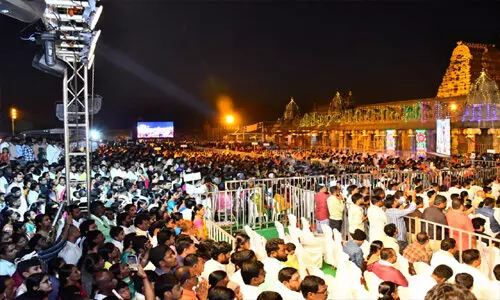 వైకుంఠ ఏకాదశి సందర్భంగా తిరుమలలో భక్తుల ఉత్త ర ద్వార దర్శనం కొనసాగుతోంది. శ్రీవారి దర్శనం అ నంతరం భక్తులు వైకుంఠ ద్వార ప్రదక్షిణం చేస్తున్నా రు. ఆలయ ఆవరణలో స్వర్ణ రథోత్సవ కార్యక్రమం భ క్తుల జయజయధ్వానాల మధ్య ఘనంగా నిర్వహించా రు. ఉభయ దేవేరులు (శ్రీదేవి, భూదేవి)తో కలిసి శ్రీ మ లయప్ప స్వామి వారు కాంతులీనుతున్న స్వర్ణ రథంపై మాడ వీధుల్లో ఊరేగారు. గోవింద నామస్మరణతో తిరుమల ఆధ్యాత్మిక శోభను సంతరించుకుంది. ఈ ఉత్సవా లు డిసెంబర్ 30 నుంచి జనవరి 8 వరకు 10 రోజుల పాటు కొనసాగనున్నాయి. లక్షలాది మంది భక్తులు ఈ సమయంలో దర్శన భాగ్యాన్ని పొందేందుకు తరలివచ్చారు. ఈ మేరకు తిరుమల తిరుపతి దేవస్థానం వి స్తృత ఏర్పాట్లు చేసి భక్తులకు సురక్షితంగా సౌకర్యవంతంగా శ్రీవారి దర్శనమయ్యేలా చర్యలు తీసుకున్నారు.