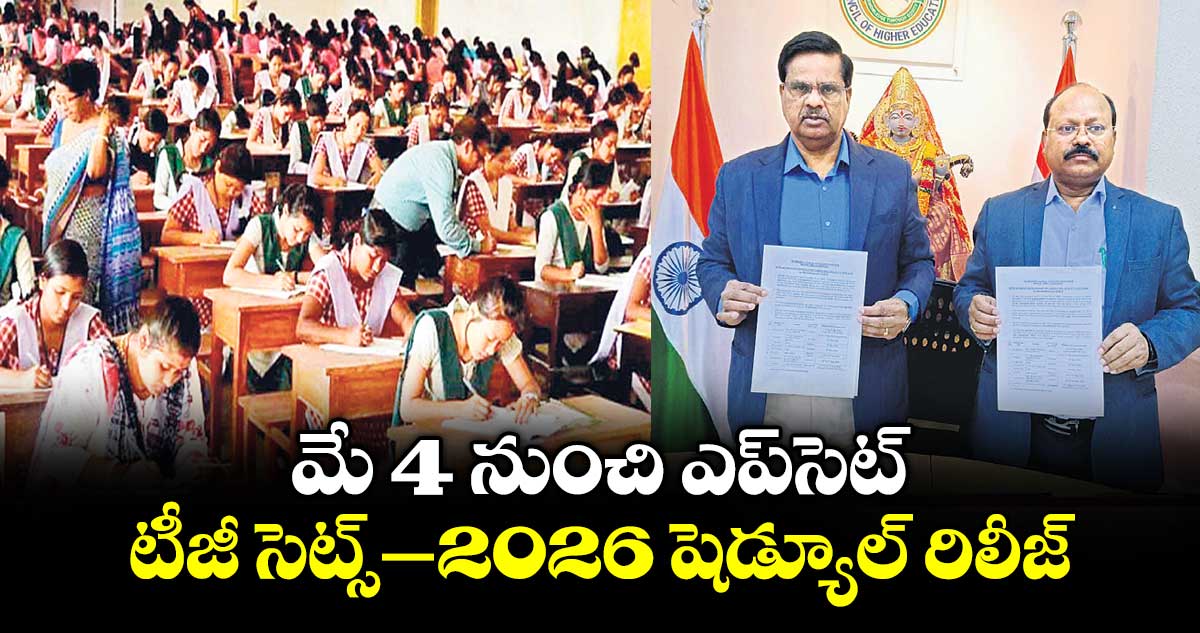 హైదరాబాద్, వెలుగు: రాష్ట్రంలో వచ్చే విద్యా సంవత్సరం (2026–27) వివిధ ప్రొఫెషనల్ కోర్సుల్లో అడ్మిషన్ల కోసం నిర్వహించే కామన్ ఎంట్రెన్స్ టెస్టుల (టీజీ సెట్స్–2026) షెడ్యూల్ రిలీజ్ అయింది. మే 4 నుంచి 11 వరకు టీజీ ఎప్ సెట్ పరీక్షలు ఉంటాయని అధికారులు ప్రకటించారు. మంగళవారం తెలంగాణ హయ్యర్ ఎడ్యుకేషన్ కౌన్సిల్ ఆఫీసులో టీజీసీహెచ్ఈ చైర్మన్ ప్రొఫెసర్ బాలకిష్టారెడ్డి, సెక్రటరీ శ్రీరామ్ వెంకటేశ్ సెట్స్ షెడ్యూల్ను రిలీజ్ చేశారు.
