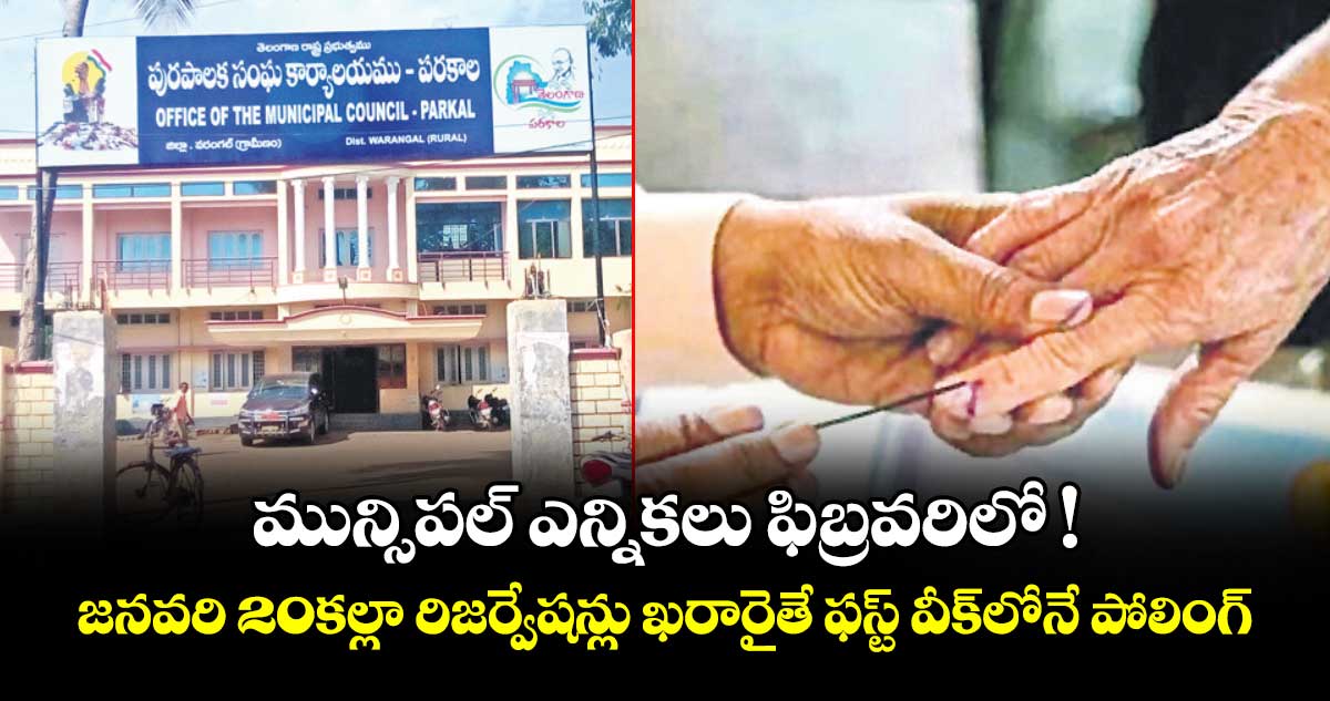 ప్రభుత్వం జనవరి 20 నాటికి రిజర్వేషన్లను ఖరారు చేస్తే.. ఫిబ్రవరి మొదటి వారంలో ఎన్నికలు నిర్వహించే అవకాశం ఉంది. ఒకవేళ ఏమాత్రం ఆలస్యమైనా ఇంటర్, టెన్త్ పరీక్షల కారణంగా మళ్లీ మే వరకు ఆగాల్సిన పరిస్థితి నెలకొంది. మరోవైపు మార్చి నెలాఖరు కల్లా మున్సిపాలిటీల్లో కొత్త పాలకవర్గాలు ఏర్పాటు కాకపోతే కేంద్ర ఆర్థిక సంఘం నుంచి రావాల్సిన నిధులు కూడా చేజారిపోతాయని సర్కార్ ఆందోళన చెందుతున్నది.