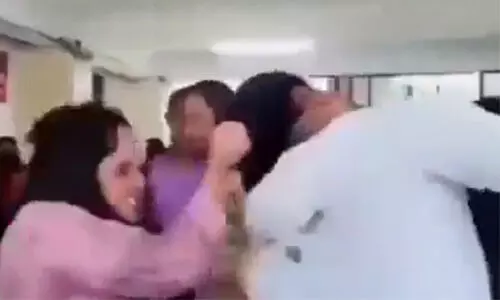 హైదరాబాద్: ఫ్యామిలీ కోర్టులో భర్తను భార్య చితకబాదింది. విడాకుల అనంతరం భర్తపై దాడి చేస్తున్న కూడా నవ్వుతూ భర్త తన్నులు తిన్నాడు. భార్య భరణం కోసం కేసు వేసింది. తన పేరిట ఉన్న ఆస్తులన్నింటినీ తన తల్లి పేరు మీదకు భర్త బదలాయించాడు. తనకు ఆస్తులు లేవు అని, ఉద్యోగం లేదని, భరణం ఇవ్వలేనని కోర్టుకు భర్త తేల్చి చెప్పాడు. అతని వాదనతో కోర్టు ఏకీభవించింది. భరణం రాకుండా చేశాడని భర్తను భార్య కొట్టింది. ఇది ఎక్కడ జరిగిందో ఏమో తెలియదు కానీ దీనికి సంబంధించిన వీడియో సోషల్ మీడియాలో వైరల్ గా మారింది.