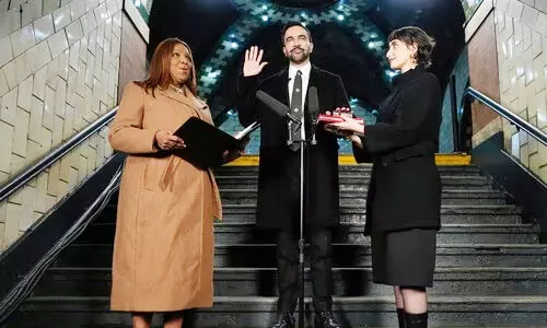 అమెరికా మహానగరం న్యూయార్క్ మేయర్గా జోహ్రాన్ మమ్దానీ గురువారం ప్రమాణ స్వీకారం చేశారు. ఈ నగరానికి ఆయన వరుస క్రమంలో 112వ మేయర్ అయ్యారు. స్థానిక మాన్హట్టన్లోని ఓల్డ్ సబ్ వే స్టేషన్లో కొత్త సంవత్సర ఆగమనం దశలో ఆయన ఖురాన్పై ప్రమాణం చేసి బాధ్యతలు స్వీకరించారు. అధికారిక హడావిడికి దూరంగా ప్రైవేటు కార్యక్రమంగా ఈ ప్రమాణ స్వీకారం జరిగింది. 34 సంవత్సరాల మమ్దాని న్యూయార్క్కు తొలి దక్షిణాసియా , ముస్లిం మేయర్గా ఎన్నికయ్యారు. అమెరికాలో చరిత్ర సృస్టించారు. కార్యక్రమానికి ఆయన కుటుంబ సభ్యులు, కొందరు స్నేహితులు హాజరయ్యారు. కొత్త సంవత్సర ఆగమన గంటలు మోగుతున్న దశలో ఆయన ఈ గురుతర బాధ్యతలు స్వీకరించారు. భారతీయ సంతతికి చెందిన మమ్దాని ఇంతకు ముందు