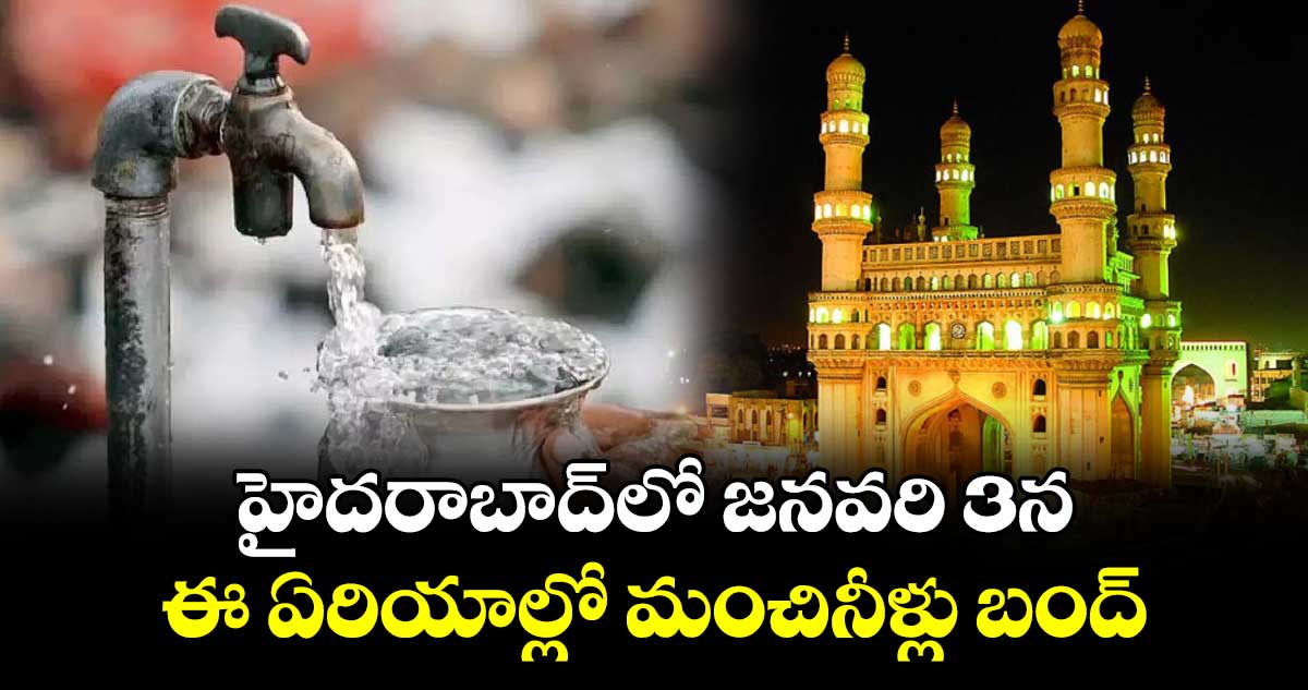 హైదరాబాద్ లోని పలుచోట్ల మంచినీటి సరఫరాకి అంతరాయం కల్గనుంది. జనవరి 3 ఉదయం 10 గంటల నుంచి జనవరి 4 తెల్లవారుజామున 4 గంటల వరకు మొత్తం 18 గంటల పాటు తాగునీళ్ల సరఫరా నిలిచిపోనుందని జలమండలి ప్రకటించింది. సింగూరు ప్రాజెక్ట్ ఫేజ్–3 మెయిన్ పైప్ లైన్ కి భారీ లీకేజీలు ఏర్పడినందున 1600 ఎంఎం డయా పైప్ లైన్ కి అత్యవసర మరమ్మత్తులు చేపడుతున్నారు. పెద్దపూర్–సింగపూర్ మధ్య పనులు చేపట్టన్నారు అధికారులు.
