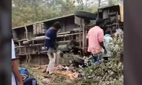 హైదరాబాద్: భద్రాద్రి జిల్లాలో అశ్వాపురం మండలం మొండికుంట గ్రామం వద్ద రోడ్డు ప్రమాదం జరిగింది. కెఎల్ఆర్ కాలేజీ బస్సు అదుపుతప్పి బోల్తా పడింది. 60 మంది విద్యార్థులు గాయాలయ్యాయి. క్షతగాత్రులను భద్రాచలం ఆస్పత్రికి తరలించారు. ఇద్దరి పరిస్థితి విషమంగా ఉంది. మణుగూరు నుంచి పాల్వంచ వెళ్తుండగా ఈ ఘటన చోటు చేసుకుంది. స్థానికుల సమాచారం మేరకు పోలీసులు ఘటనా స్థలానికి చేరుకుని.. కేసు నమోదు చేసుకుని దర్యాప్తు చేస్తున్నారు. అతివేగమే ప్రమాదానికి కారణమని పోలీసులు భావిస్తున్నారు. ప్రాణనష్టం జరగలేదని వారంతా ఊపిరి పీల్చుకున్నారు.