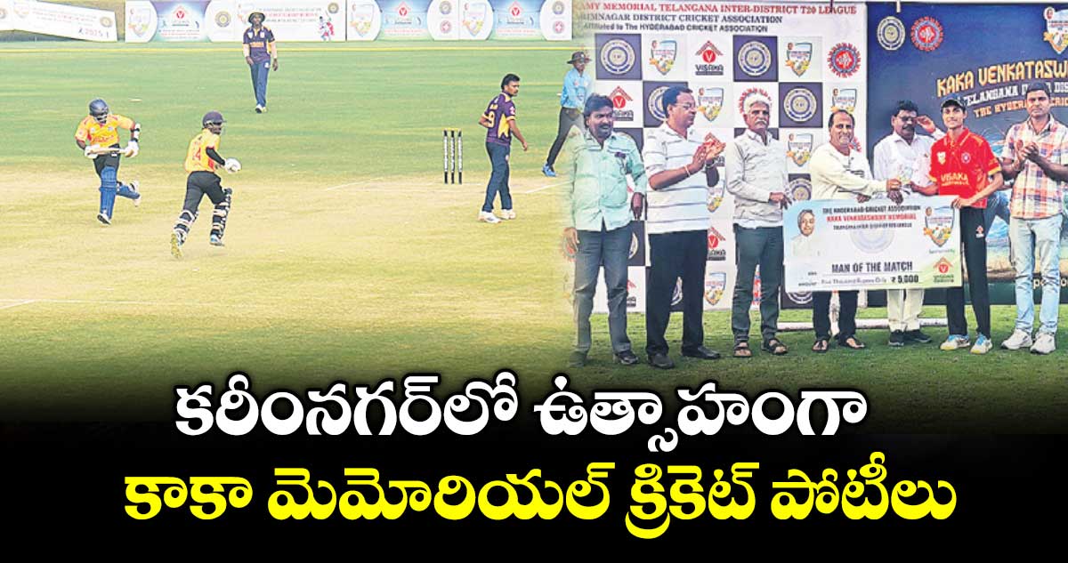 కరీంనగర్/తిమ్మాపూర్, వెలుగు: హైదరాబాద్ క్రికెట్ అసోసియేషన్ ఆధ్వర్యంలో కాకా వెంకటస్వామి మెమోరియల్ తెలంగాణ అంతర్ జిల్లా టీ20 లీగ్ ఫేజ్ -2 క్రికెట్ పోటీలు కరీంనగర్ మున్సిపల్ కార్పొరేషన్ పరిధిలోని అలుగునూర్లో శుక్రవారం నుంచి ఉత్సాహంగా ప్రారంభమయ్యాయి. మొదటి రోజు ఉదయం ఆదిలాబాద్, మెదక్ జిల్లాల మధ్య మ్యాచ్ జరిగింది. టాస్ గెలిచిన ఆదిలాబాద్ జట్టు ఫీల్డింగ్ ఎంచుకుంది.