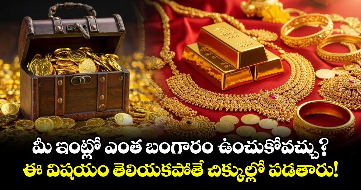 భారతదేశంలో ఒక వ్యక్తి లేదా కుటుంబం ఇంట్లో ఎంత బంగారం ఉండవచ్చనే దానిపై ఎటువంటి చట్టపరమైన పరిమితి/రూల్ లేదు. అలాగే సాధారణంగా ప్రజలు ఎంత బంగారమైనా ఇంట్లో ఉంచుకోవచ్చు, కానీ దానికి తగిన అధరాలు అంటే documents చూపించాల్సి ఉంటుంది. అయితే, ఐటి దాడులు జరిగినప్పుడు ఎటువంటి ఆధారాలు అడగకుండా, స్వాధీనం చేసుకోకుండా ఉండేందుకు ప్రభుత్వం కొన్ని పరిమితులను విధించింది.