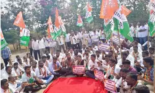 సిద్దిపేట డిసిసి అధ్యక్షురాలు ఆంక్షరెడ్డి, మాజీ ఎంఎల్ఎ నర్సారెడ్డి ఆధ్వర్యంలో ఎర్రవల్లి ఫామ్హౌస్ వద్ద కాంగ్రెస్ శ్రేణుల నిరసన