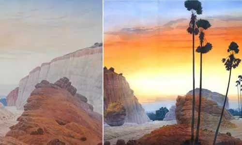 చాలా ఏళ్ళ కిందట తెలుగు విశ్వవిద్యాలయం వైస్- ఛాన్స్ లర్ గారిని వారి ఛాంబర్లో మొదటిసారి కలుసుకున్నప్పుడు, ఆ కలుసుకున్నదెవరినో, అప్పుడు ఎందుకు అక్కడికి వెళ్ళానో ఇప్పుడు గుర్తులేదు గానీ, ఆ ఛాంబర్లో గోడమీద చూసిన రెండు చిత్రలేఖనాలు మాత్రం నా మనసులో ఇప్పటికీ నాటుకుపోయి ఉన్నాయి. వాటిని ఎవరు చిత్రించారో, అవి ఒరిజినలు చిత్రాలో లేక ప్రింటులో అక్కడ వాళ్ళకి కూడా అప్పుడు తెలిసినట్టు లేదు. కాని వాటిని చూడగానే నా మనసు ఒక రాళ్ళదారిన, ఒక మట్టిదారిన అపురూమైన సంధ్యా సమయానికి వెళ్ళిపోయింది. అంత సున్నితమైన నీటి రంగుల్లో, అంత అకలంకమైన పూతల్తో, అంత మృదువైన రేఖావిన్యాసంతో గీసిన అటువంటి బొమ్మల్ని నేనప్పటిదాకా చూసి ఉండలేదు. చూడగానే వాటిల్లో ఉన్నది తెలుగు తావులేననీ, వాటిని బహుశా ఒక తెలుగు చిత్రకారుడే చిత్రించి ఉంటాడనీ నాకు తోచింది గాని, ఆ చిత్రకారుడెవరై ఉండవచ్చో నాకు తెలియలేదు. ఇన్నాళ్ళకు తెలిసింది నాకు వాటిని చిత్రించింది భగీరధిగారనీ, ఆ చిత్రాలు ‘మొగల్రాజపురం హిల్ సైడ్ ‘మొగల్రాజపురం రోడ్ సైడ్’ అనీ. మొక్కపాటి కృష్ణమూర్తిగారి ద్వారా అవి తెలుగు విశ్వవిద్యాలయానికి చేరాయనీ.