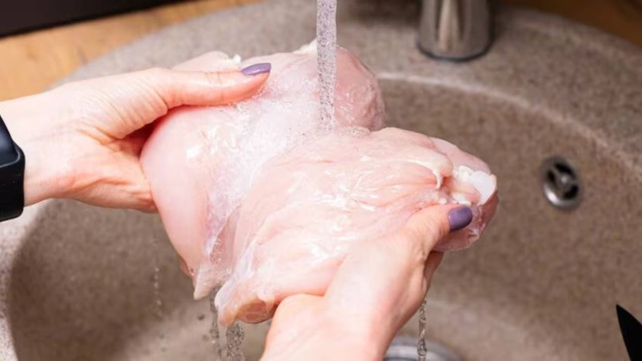 చాలా మంది చికెన్ను వండడానికి ముందు దాన్ని నీటితో బాగా కడగుతారు, అలా చేస్తే అది శుభ్రం అవుతుందని అందురూ అనుకుంటారు. కానీ నిపుణులు మాత్రం ఇది పెద్ద తప్పుని అంటున్నారు. చికెన్ను నీటితో కడగడం వల్ల సాల్మొనెల్లా, క్యాంపిలోబాక్టర్ వంటి ప్రమాదకరమైన బ్యాక్టీరియా పూర్తిగా తొలగిపోదు. బదులుగా ఇటి కిచెన్ మొత్తం వ్యాపిస్తుందని చెబుతున్నారు. అక్కడే ఇతర వంటకాలు కూడా చేయడం వల్ల ఫుడ్ పాయిజనింగ్ జరిగే ప్రమాదం ఉందంటున్నారు.