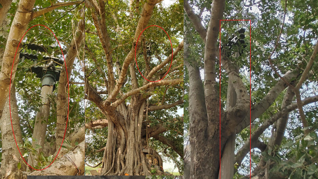 మర్రిచెట్టును నరకడం ఇష్టంలేక ధ్వజస్తంభాన్ని వదిలేశారట…
