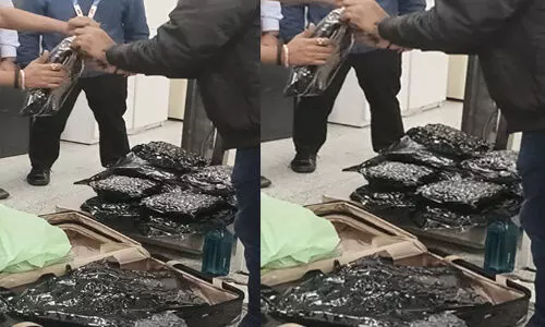 శంషాబాద్ ఎయిర్పోర్ట్లో శుక్రవారం భారీగా హైడ్రోఫోనిక్ గంజాయి పట్టుబడింది. ఖతార్ దేశం నుండి వచ్చిన విమానంలో దీనిని కస్టమ్స్ అధికారులు గుర్తించారు. ఖతార్ ఎయిర్ లైన్స్ (501) విమానంలో వచ్చిన ఒక ప్రయాణికుడు ఎయిర్పోర్ట్లో దిగిన వెంటనే కస్టమ్స్ అధికారులకు అనుమానం వచ్చింది. దీంతో అతనిని అదుపులోకి తీసుకుని విచారించగా లగేజీలో మత్తు పదార్థం ఉన్నట్టు తేలింది. లగేజీ బ్యాగేజ్ను క్షుణ్ణంగా తనిఖీ చేయడంతో అందులో హైడ్రోఫోనిక్ గంజాయి బయటపడింది. పట్టుబడ్డ 14 కిలోలు గంజాయి విలువ 14 కోట్లు ఉంటుందని అంచనా వేశారు. గంజాయిని స్వాధీనం చేసుకుని నిందితుడిపై కేసు నమోదు చేసి దర్యాప్తు చేపట్టారు.