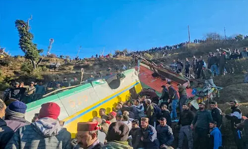 సిమ్లా: హిమాచల్ ప్రదేశ్ రాస్ట్రం సిర్మౌర్ జిల్లాలో బస్సులో లోయలో పడింది. హరిపుర్ధర్ ప్రాంతంలో బసు అదుపు తప్పి 400 మీటర్ల లోతుగల లోయలో పడడంతో 12 మంది మృతి చెందారు. ఈ ప్రమాదంలో 35 మంది గాయపడడంతో ఆస్పత్రికి తరలించారు. పోలీసులు, రెస్కూ సిబ్బంది ఘటనా స్థలానికి చేరుకొని సహాయక చర్యలు చేపట్టారు. 50 మంది ప్రయాణికులతో బస్సు సోలాన్ నుంచి కుప్వికు వెళ్తండగా ఈ ప్రమాదంలో జరిగింది. ప్రమాదమైన మలుపు వద్దనే ఈ ప్రమాదంలో జరిగినట్టు సమాచారం. గాయపడినలో పది మందికి తీవ్రగాయాలు అయ్యాయని వైద్యుల వెల్లడించారు. క్షతగాత్రులు, మృతులు సిర్మౌర్ జిల్లాకు చెందిన వారిగా గుర్తించారు. ఈ ఘటనపై ప్రధాని నరేంద్రమోడీ, ముఖ్యమంత్రి సుఖ్విందర్ సింగ్ దిగ్భ్రాంతి వ్యక్తం చేశారు. మృతులకు రెండు లక్షల రూపాయల, గాయపడిన వారికి రూ. 50 వేలు ఎక్స్గ్రేషియా ఇస్తామని ప్రధాని కార్యాలయం ప్రకటించింది.