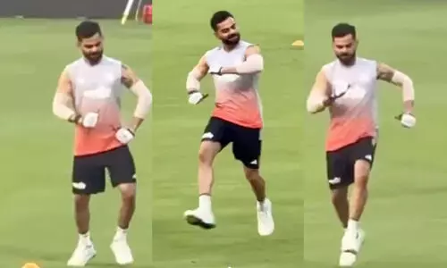 గాంధీనగర్: గుజరాత్లోని వడోదరలో న్యూజిలాండ్తో టీమిండియా వన్డే మ్యాచ్ ఆడనుంది. ఈ క్రమంలో టీమిండియా ఆటగాళ్లు ప్రాక్ట్రీస్ చేస్తున్నారు. విరాట్ కోహ్లీ రన్నింగ్ చేస్తూ కనిపించాడు. ఎదరుగా అర్షదీప్ రన్నింగ్ చేస్తుండడం గమనించి ఇమిటేట్ చేశాడు. దీనికి సంబంధించిన వీడియో సోషల్ మీడియాలో వైరల్గా మారింది. గ్రౌండ్లోకి దిగినప్పుడు ఎంత సిరీయస్గా ఉంటాడో బయట మాత్రం అంత సరదాగా ఉంటాడు. జస్ప్రీత్ బుమా బౌలింగ్ యాక్షన్, సౌతాఫ్రికా కెప్టెన్ తెంబా బవుమా వాకింగ్ స్లైల్ను విరాట్ ఇమిటేట్ చేసి గతంలో నవ్వులు తెప్పించిన విషయం తెలిసిందే. కెఎల్ రాహుల్, హర్బజన్ సింగ్, సూర్యకుమార్ యాదవ్, శ్రేయస్ అయ్యర్లను ఆటపట్టించాడు. టీమిండియా ఆటగాళ్లతో కోహ్లీ చాలా ఫ్రెండ్లీగా ఉంటాడు.