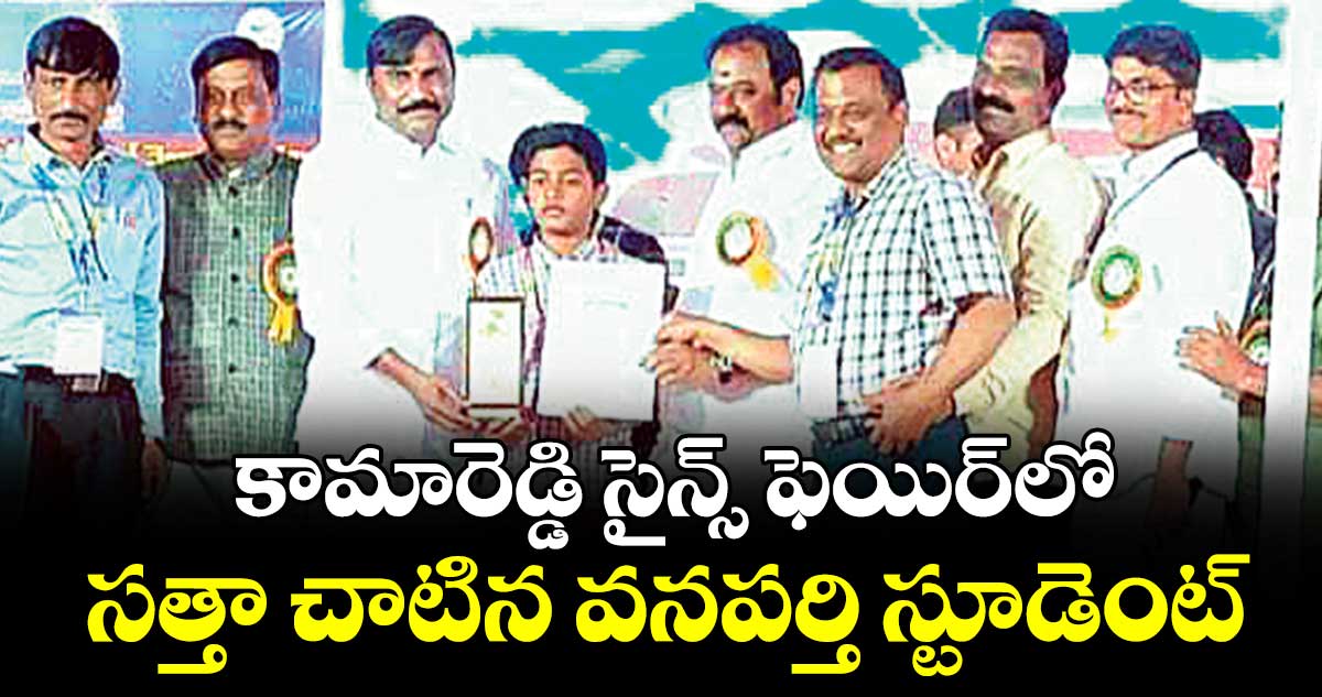 వనపర్తి, వెలుగు: కామారెడ్డిలో నిర్వహించిన స్టేట్ లెవెల్ సైన్స్ ఫెయిర్లో వనపర్తి జడ్పీ హైస్కూల్కు చెందిన స్టూడెంట్ స్టేట్ లెవెల్లో రెండో స్థానంలో నిలిచాడు. స్థానిక జడ్పీ బాయ్స్హైస్కూల్లో చదువుతున్న ఉమర్ సిద్దిఖి వర్షపు నీటి పునర్వినియోగం అనే అంశంపై గైడ్ టీచర్ కె. నరేశ్కుమార్ పర్యవేక్షణలో ప్రదర్శన ఇచ్చాడు.
