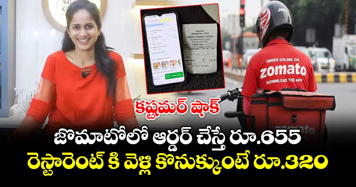 నళిని అనే కస్టమర్ ఒక రెస్టారెంట్లో ఫుడ్ తిన్న తర్వాత వచ్చిన ఫిజికల్ బిల్లును, అదే సమయంలో జొమాటో యాప్లో అదే వంటకాలకు చూపిస్తున్న ధరను స్క్రీన్షాట్ తీసి పోస్ట్ చేసింది. ఆశ్చర్యకరంగా రెస్టారెంట్లో ఆమె ఆర్డర్ చేసిన ఫుడ్ బిల్లు కేవలం రూ.320 మాత్రమే. కానీ అదే ఐటమ్స్ను జొమాటోలో ఆర్డర్ చేస్తే రూ.655 చూపిస్తోంది. డిస్కౌంట్స్ అప్లై చేసిన తర్వాత కూడా కట్టాల్సిన మెుత్తం బిల్ రూ.550 చూపించినట్లు ఆమె పేర్కొంది. అంటే దాదాపు రూ.230 అదనంగా భారం పడుతోంది. ఇది కస్టమర్లను లూటీ చేయటమేనని ఆమె అంటోంది.