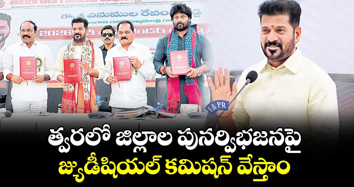 హైదరాబాద్, వెలుగు: గత పాలకుల నిర్వాకం వల్ల అస్తవ్యస్తంగా మారిన జిల్లాలను పునర్వ్యవస్థీకరిస్తామని సీఎం రేవంత్రెడ్డి స్పష్టంచేశారు. ఇందుకు సంబంధించి త్వరలోనే జ్యుడీషియల్ కమిషన్ వేయబోతున్నామని చెప్పారు. జిల్లాల పునర్విభజన, కొత్త మండలాలు, రెవెన్యూ డివిజన్ల ఏర్పాటుపై గత ప్రభుత్వం తీసుకున్న నిర్ణయాలు అశాస్త్రీయంగా, హాస్యాస్పదంగా ఉన్నాయన్నారు. ప్రజలపై కొత్తగా పన్నుల భారం మోపబోమని, కానీ పన్ను ఎగవేతదారులను మాత్రం ఉపేక్షించేది లేదని చెప్పారు. గత పాలకుడు రాష్ట్రాన్ని గాలికి వదిలేసి, సమస్యలను పక్కనపెట్టి హాయిగా పామ్హౌస్లో విశ్రాంతి తీసుకుంటున్నారని విమర్శించారు. కుటుంబంలో తండ్రిని కోల్పోతే పెద్దన్న బాధ్యత తీసుకున్నట్లు, తాను రాష్ట్రానికి ఒక పెద్దన్నలా, బాధ్యతగల సోదరుడిగా అప్పులను, సమస్యలను పరిష్కరించేందుకు నిరంతరం శ్రమిస్తున్నానని తెలిపారు. సోమవారం సెక్రటేరియెట్లో టీజీవో (తెలంగాణ గెజిటెడ్ ఆఫీసర్స్ అసోసియేషన్) 2026 డైరీని సీఎం రేవంత్రెడ్డి ఆవిష్కరించారు. ఈ సందర్భంగా ఆయన మాట్లాడుతూ.. గత పాలకులు పరిపాలనా సౌలభ్యాన్ని పట్టించుకోకుండా, తమకు నచ్చిన వారికి నజరానాలు ఇచ్చినట్టుగా జిల్లాలను, మండలాలను పంచిపెట్టారని మండిపడ్డారు. ఈ అస్తవ్యస్త విధానాన్ని సరిచేసేందుకు, శాస్త్రీయంగా జిల్లాలను పునర్వ్యవస్థీకరిస్తామని స్పష్టం చేశారు.
