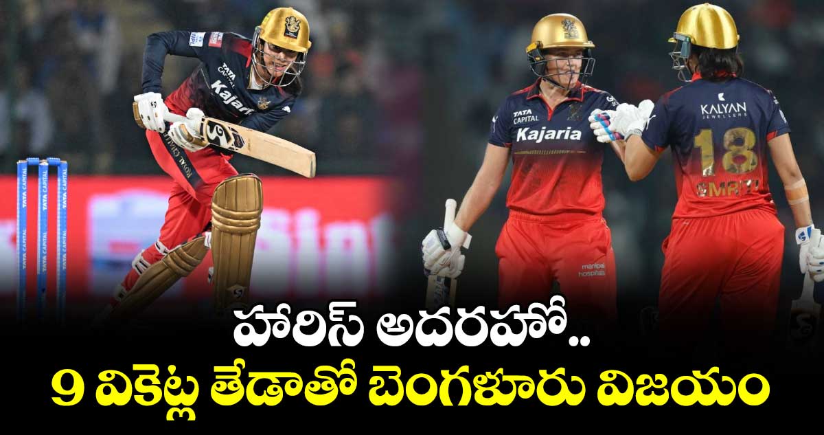 యూపీ: 20 ఓవర్లలో 143/5 (దీప్తి 45*, డాటిన్ 40*, డిక్లెర్క్ 2/28, శ్రేయంక 2/50). బెంగళూరు: 11.4 ఓవర్లలో 145/1 (హారిస్ 85, స్మృతి 47*, శిఖా పాండే 1/28).