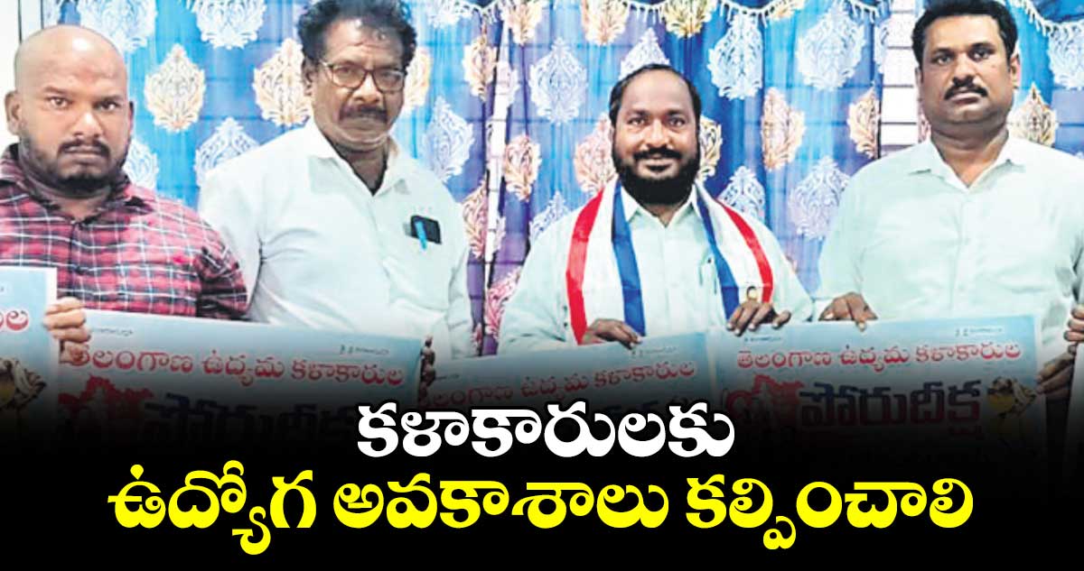 సీఎం రేవంత్ రెడ్డి, మంత్రి జూపల్లి కృష్ణారావు తక్షణమే జోక్యం చేసుకొని నిరుద్యోగ కళాకారులను ఆదుకోవాలని కోరారు. లేకుంటే ఉద్యమాన్ని మరింత ఉధృతం చేస్తామని జాజుల హెచ్చరించారు. తెలంగాణ ఉద్యమ కళాకారుల సంఘం వ్యవస్థాపకుడు అనుమోజు వెంకటేశం మాట్లాడుతూ.. కళాకారుల హక్కుల కోసం ఈ నెల 20వ తేదీన ఇంద్ర పార్క్లో ‘కళాకారుల పోరు దీక్ష’ చేపడతామన్నారు. రాష్ట్రవ్యాప్తంగా నిరుద్యోగ కళాకారులు భారీగా హాజరు కావాలని పిలుపునిచ్చారు.కార్యక్రమంలో జువాజి ప్రవీణ్, కొండ్ర కుమార్ తదితరులు పాల్గొన్నారు.